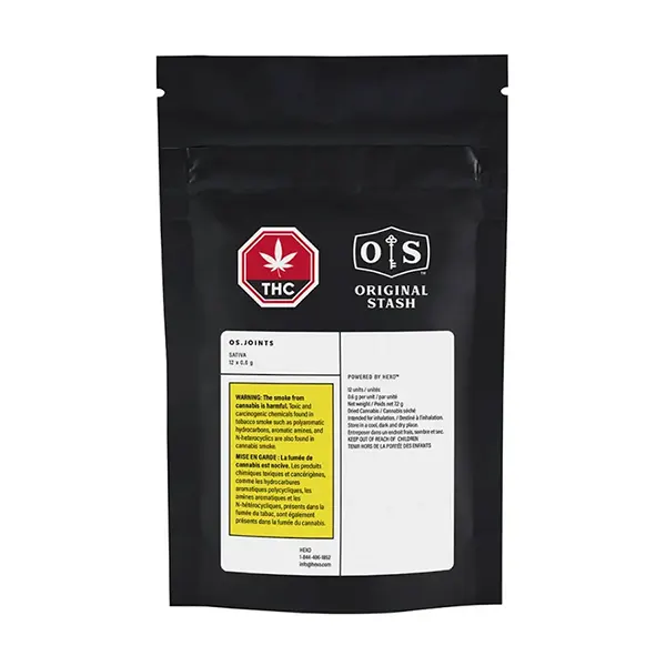 OS.JOINTS Sativa is a 12 pack of sativa dominant pre-rolls with a strong THC potential, offering busy consumers a convenient way to consume Original Stash on the go. They feature a blend of cannabis and are packaged in a resealable, child-resistant pouch. Crafted with the same care and attention as Original Stash dried flower, each pre-roll contains dried and cured cannabis that is naturally sun grown in hybrid greenhouses without the use of?chemical?pesticides. Competitively priced to crush the illegal market.? Quality weed. Legit price.??
